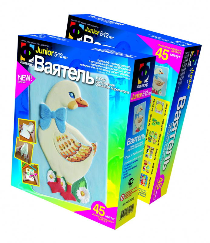 Барельеф - низкий рельеф, в котором выпуклое изображение выступает над плоскостью фона не более чем на половину своего объема.Перед вами замечательная игрушка - набор для создания объемных барельефов "Фантазер". При помощи специальных форм и быстроотверждаемой смеси Вы сможете легко создать со своим ребенком шедевр, который Вы и Ваш ребенок будете с гордостью показывать своим друзьям. Сам процесс создания барельефов очень занимателен и в игровой форме расскажет Вашему ребенку о свойствах различных предметов и доставит огромное удовольствие. Вас ждет интересное занятие и великолепный результат.