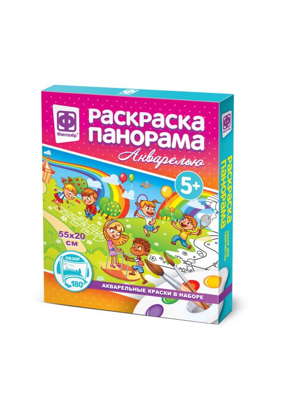 737151 Раскраска панорама акварелью Дети и Радуга