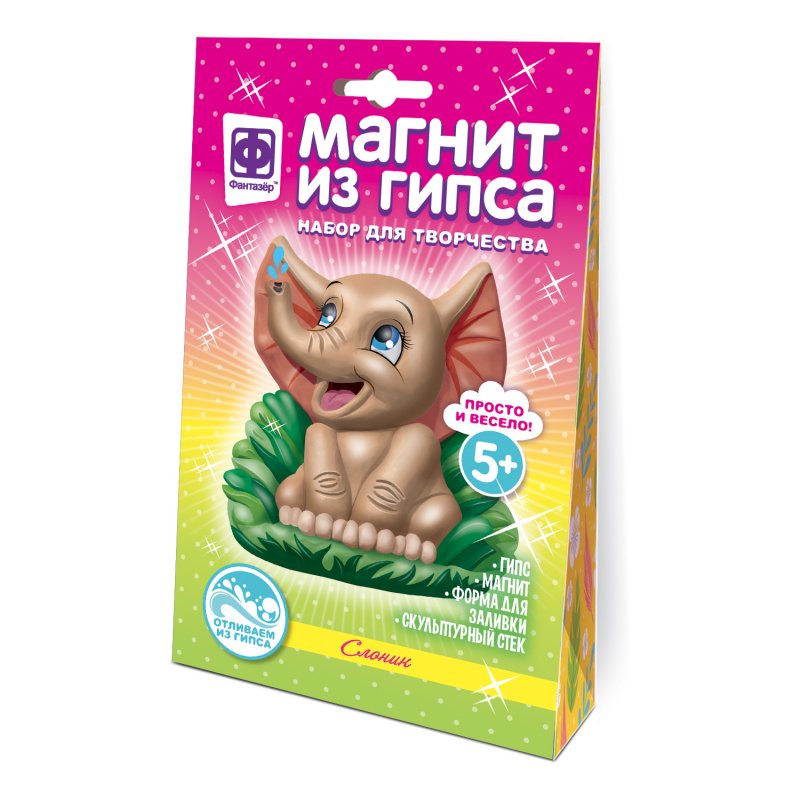 Для детей от 5 до 12 лет.Набор для создания объемных Магнитов из гипса. Используя специальные формы и быстроотвердевающую смесь, создаются гипсовые отливки, которые необходимо раскрасить.Развивает мелкую моторику и цветовое воображение.