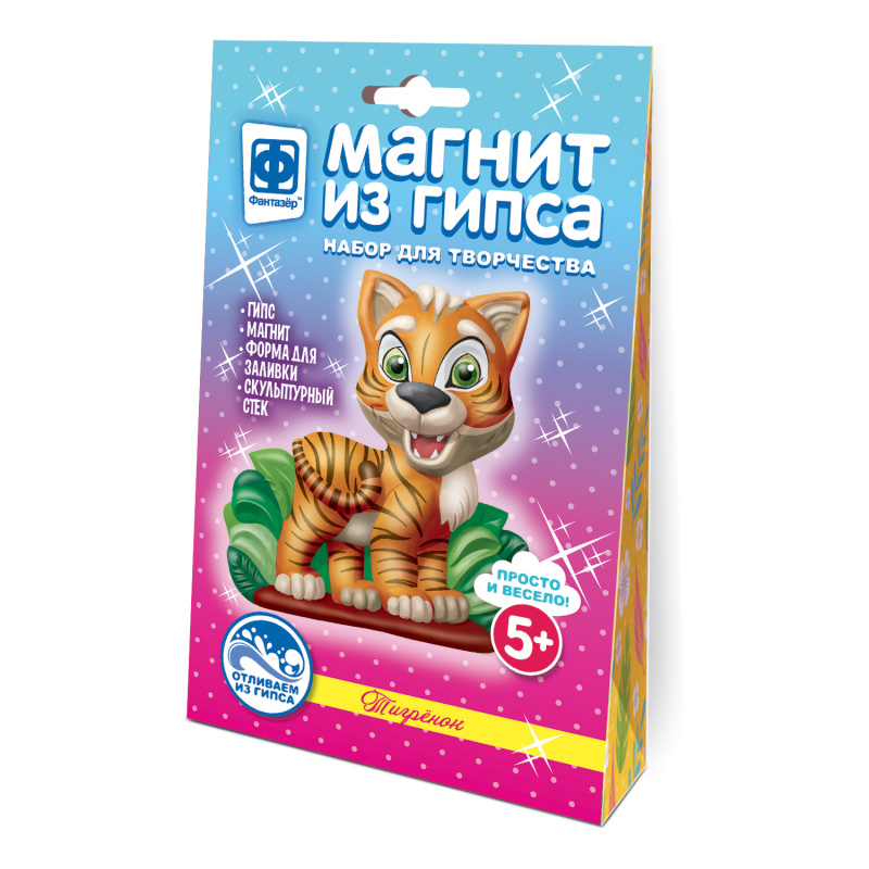 Для детей от 5 до 12 лет.Набор для создания объемных Магнитов из гипса. Используя специальные формы и быстроотвердевающую смесь, создаются гипсовые отливки, которые необходимо раскрасить.Развивает мелкую моторику и цветовое воображение.